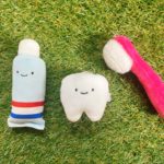 持っているのは「歯ブラシ」と「歯磨き粉」と普通の「歯」です。